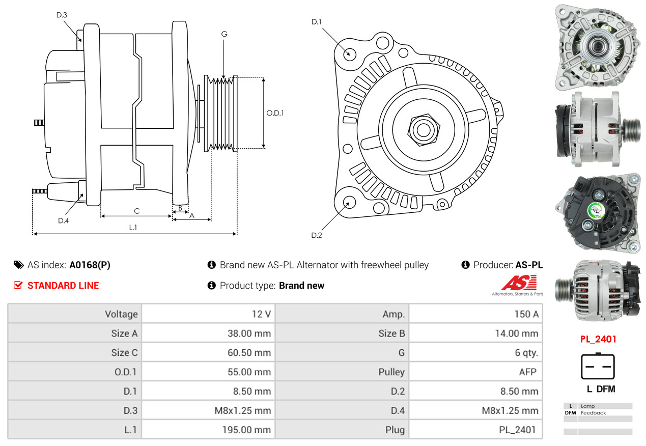 AS-PL je renomovaná evropská značka se sídlem v Polsku, která se specializuje na výrobu a distribuci startérů, alternátorů a jejich komponentů. Společnost vznikla v roce 1992 a dnes dodává více než 20 000 různých produktů do více než 100 zemí světa. AS-PL nabízí jak kompletní jednotky, tak i náhradní díly a komponenty pro opravy. [Více zde]