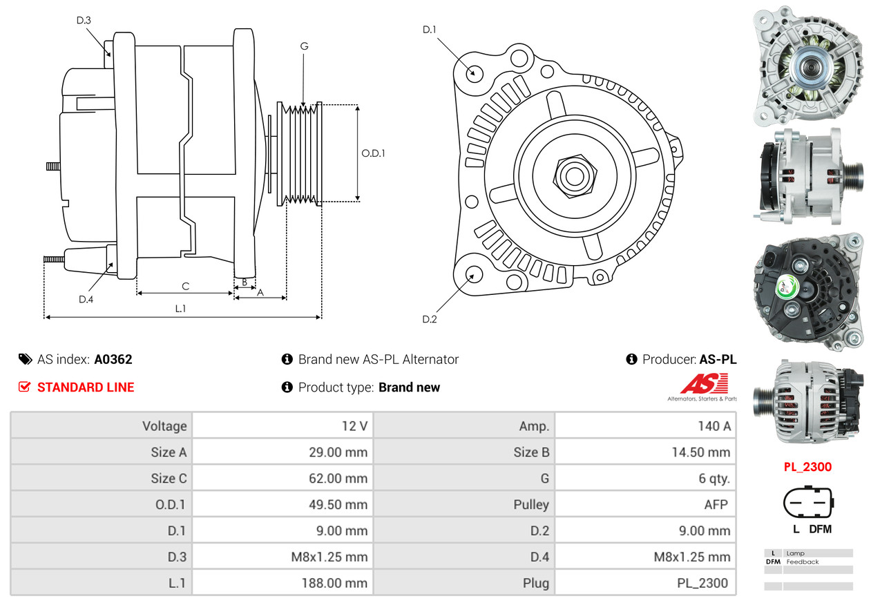 AS-PL je renomovaná evropská značka se sídlem v Polsku, která se specializuje na výrobu a distribuci startérů, alternátorů a jejich komponentů. Společnost vznikla v roce 1992 a dnes dodává více než 20 000 různých produktů do více než 100 zemí světa. AS-PL nabízí jak kompletní jednotky, tak i náhradní díly a komponenty pro opravy. [Více zde]