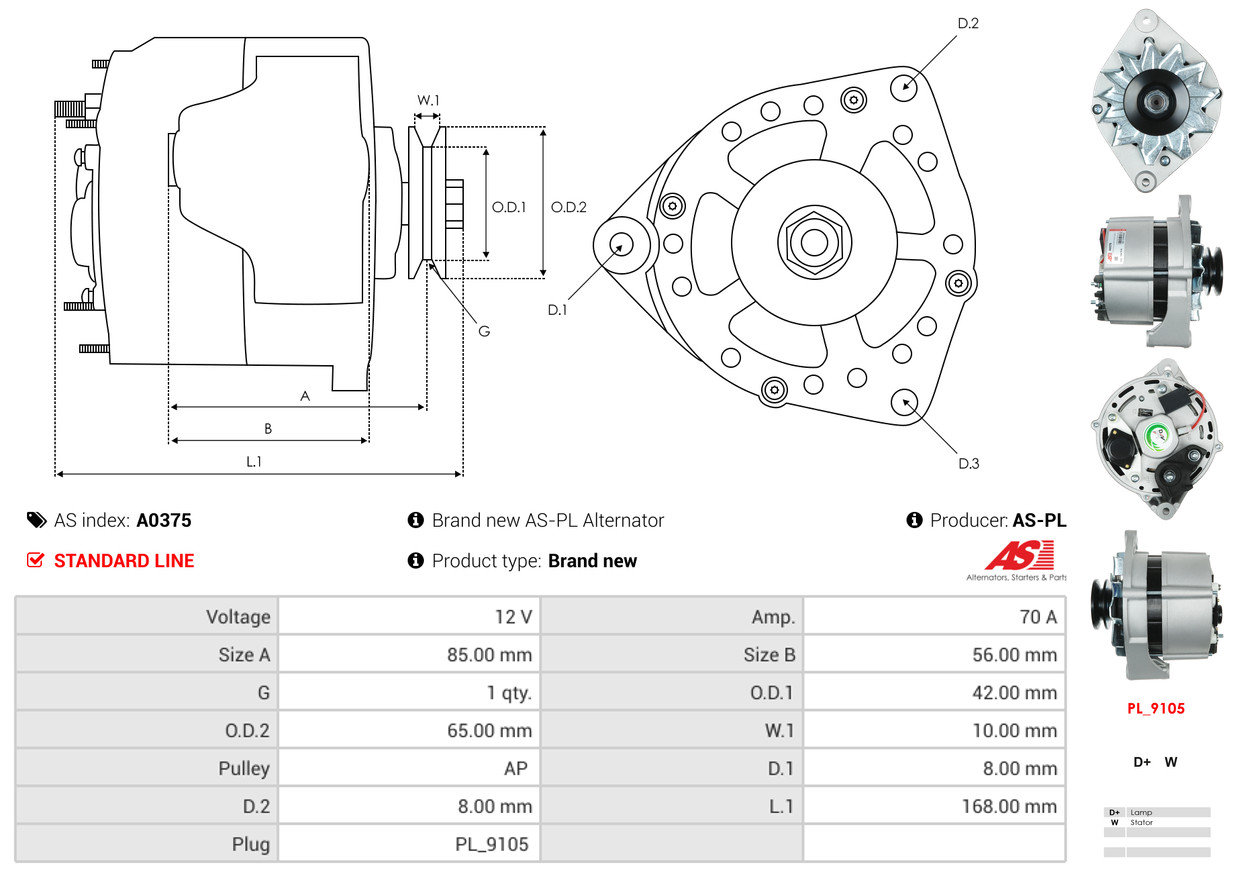 AS-PL je renomovaná evropská značka se sídlem v Polsku, která se specializuje na výrobu a distribuci startérů, alternátorů a jejich komponentů. Společnost vznikla v roce 1992 a dnes dodává více než 20 000 různých produktů do více než 100 zemí světa. AS-PL nabízí jak kompletní jednotky, tak i náhradní díly a komponenty pro opravy. [Více zde]
