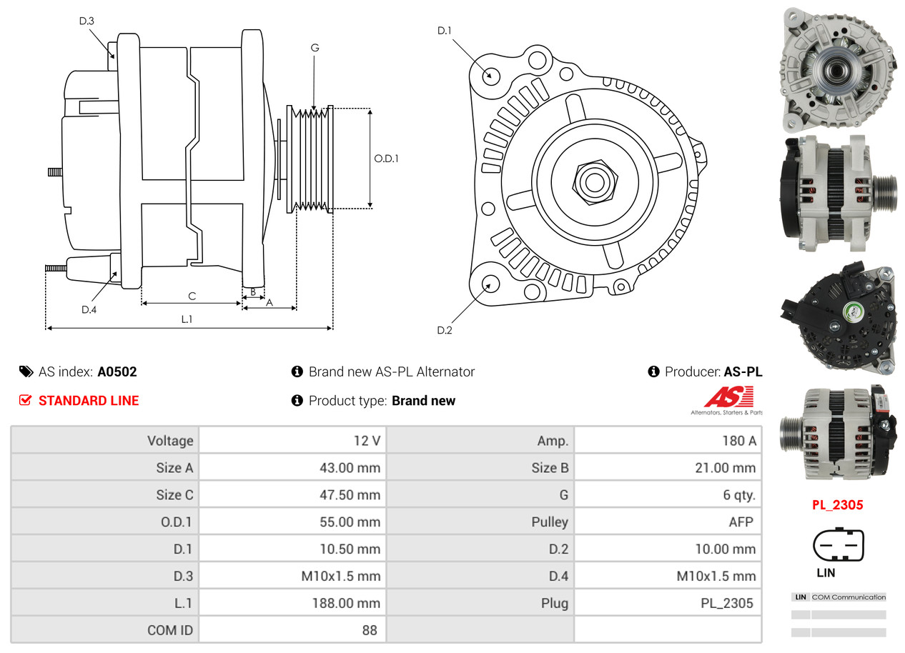 AS-PL je renomovaná evropská značka se sídlem v Polsku, která se specializuje na výrobu a distribuci startérů, alternátorů a jejich komponentů. Společnost vznikla v roce 1992 a dnes dodává více než 20 000 různých produktů do více než 100 zemí světa. AS-PL nabízí jak kompletní jednotky, tak i náhradní díly a komponenty pro opravy. [Více zde]