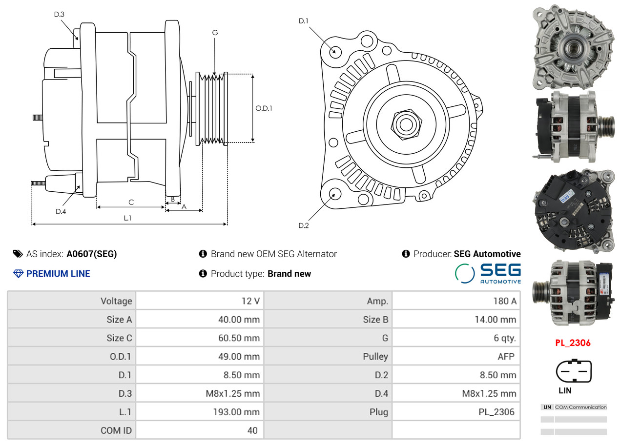 AS-PL je renomovaná evropská značka se sídlem v Polsku, která se specializuje na výrobu a distribuci startérů, alternátorů a jejich komponentů. Společnost vznikla v roce 1992 a dnes dodává více než 20 000 různých produktů do více než 100 zemí světa. AS-PL nabízí jak kompletní jednotky, tak i náhradní díly a komponenty pro opravy. [Více zde]