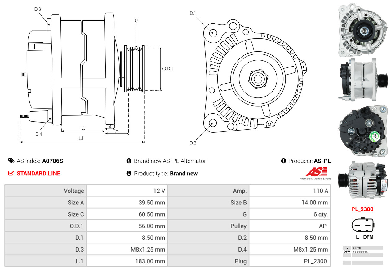 AS-PL je renomovaná evropská značka se sídlem v Polsku, která se specializuje na výrobu a distribuci startérů, alternátorů a jejich komponentů. Společnost vznikla v roce 1992 a dnes dodává více než 20 000 různých produktů do více než 100 zemí světa. AS-PL nabízí jak kompletní jednotky, tak i náhradní díly a komponenty pro opravy. [Více zde]