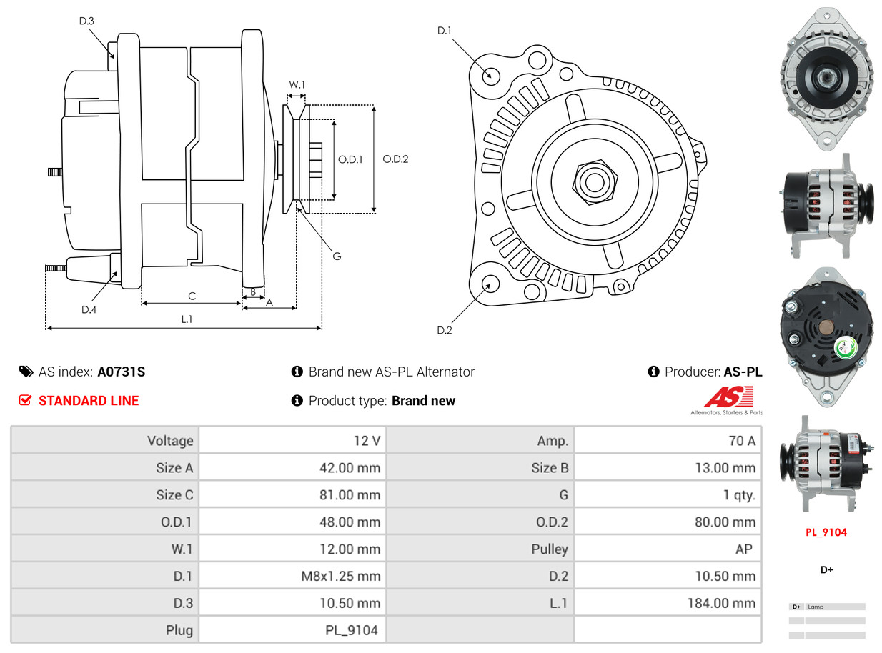 AS-PL je renomovaná evropská značka se sídlem v Polsku, která se specializuje na výrobu a distribuci startérů, alternátorů a jejich komponentů. Společnost vznikla v roce 1992 a dnes dodává více než 20 000 různých produktů do více než 100 zemí světa. AS-PL nabízí jak kompletní jednotky, tak i náhradní díly a komponenty pro opravy. [Více zde]