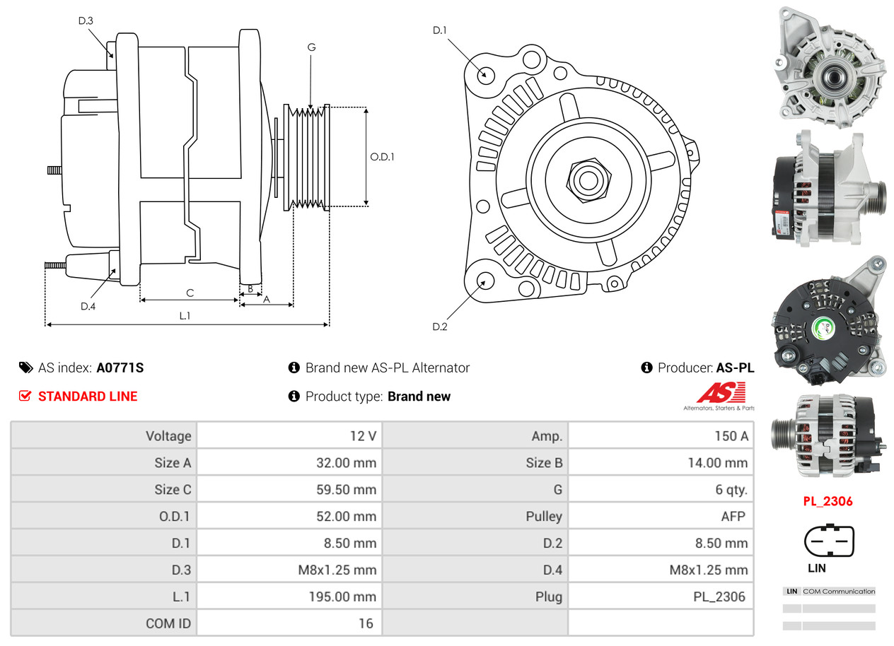 AS-PL je renomovaná evropská značka se sídlem v Polsku, která se specializuje na výrobu a distribuci startérů, alternátorů a jejich komponentů. Společnost vznikla v roce 1992 a dnes dodává více než 20 000 různých produktů do více než 100 zemí světa. AS-PL nabízí jak kompletní jednotky, tak i náhradní díly a komponenty pro opravy. [Více zde]