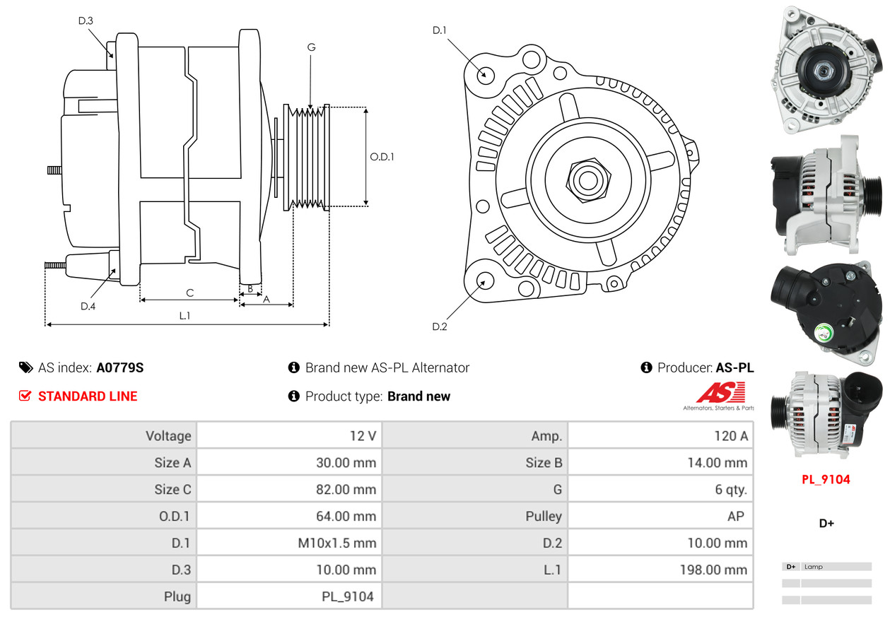 AS-PL je renomovaná evropská značka se sídlem v Polsku, která se specializuje na výrobu a distribuci startérů, alternátorů a jejich komponentů. Společnost vznikla v roce 1992 a dnes dodává více než 20 000 různých produktů do více než 100 zemí světa. AS-PL nabízí jak kompletní jednotky, tak i náhradní díly a komponenty pro opravy. [Více zde]