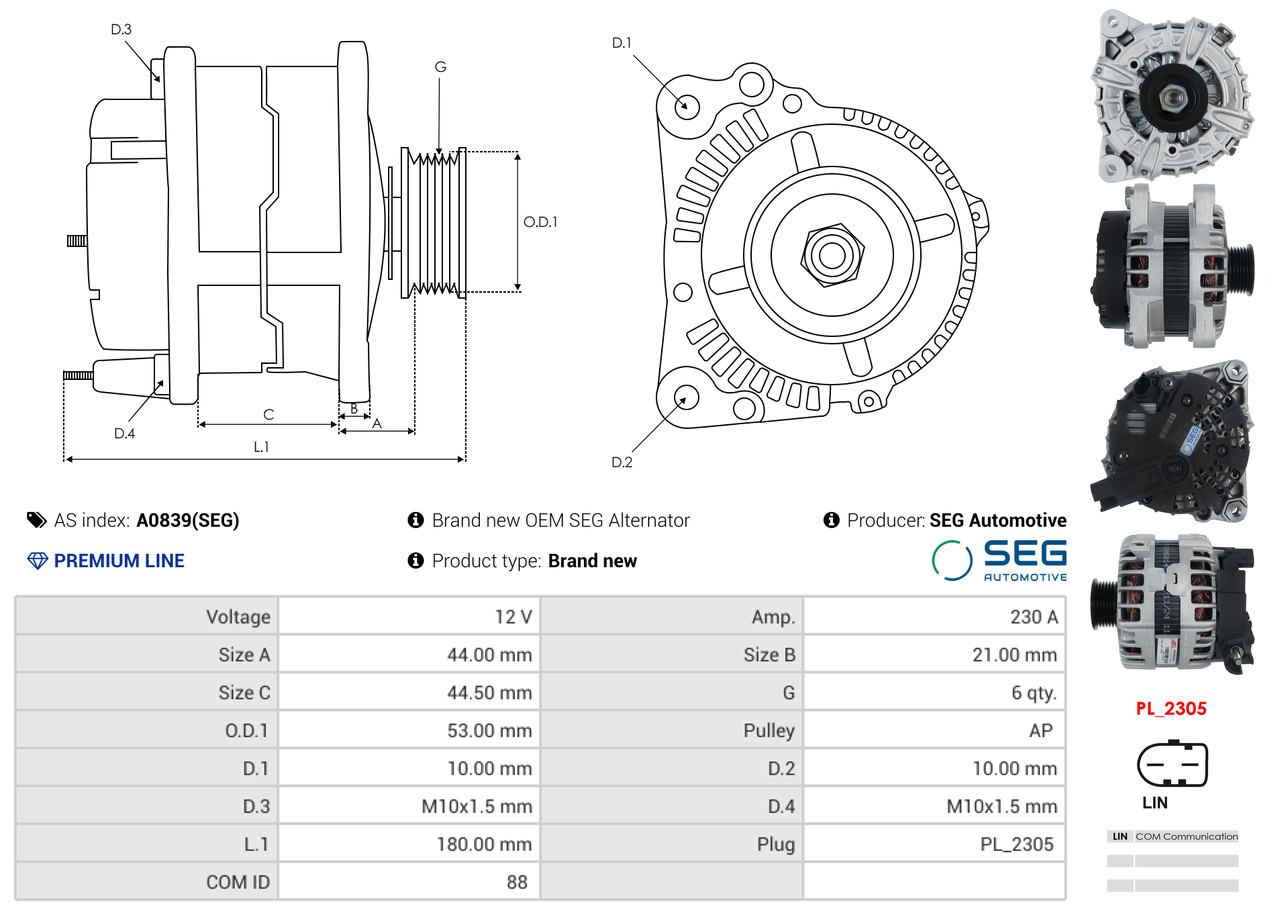 AS-PL je renomovaná evropská značka se sídlem v Polsku, která se specializuje na výrobu a distribuci startérů, alternátorů a jejich komponentů. Společnost vznikla v roce 1992 a dnes dodává více než 20 000 různých produktů do více než 100 zemí světa. AS-PL nabízí jak kompletní jednotky, tak i náhradní díly a komponenty pro opravy. [Více zde]