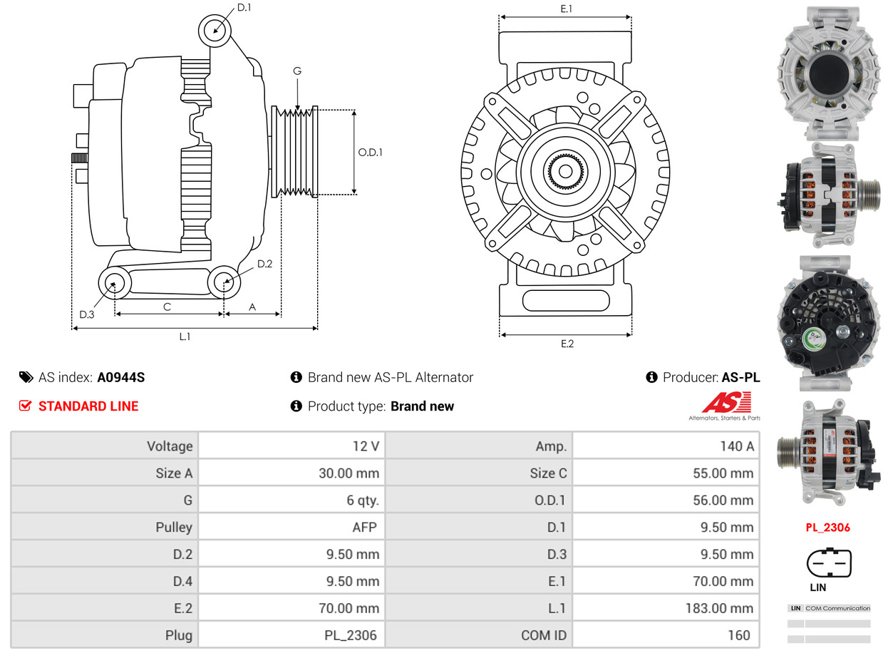 AS-PL je renomovaná evropská značka se sídlem v Polsku, která se specializuje na výrobu a distribuci startérů, alternátorů a jejich komponentů. Společnost vznikla v roce 1992 a dnes dodává více než 20 000 různých produktů do více než 100 zemí světa. AS-PL nabízí jak kompletní jednotky, tak i náhradní díly a komponenty pro opravy. [Více zde]
