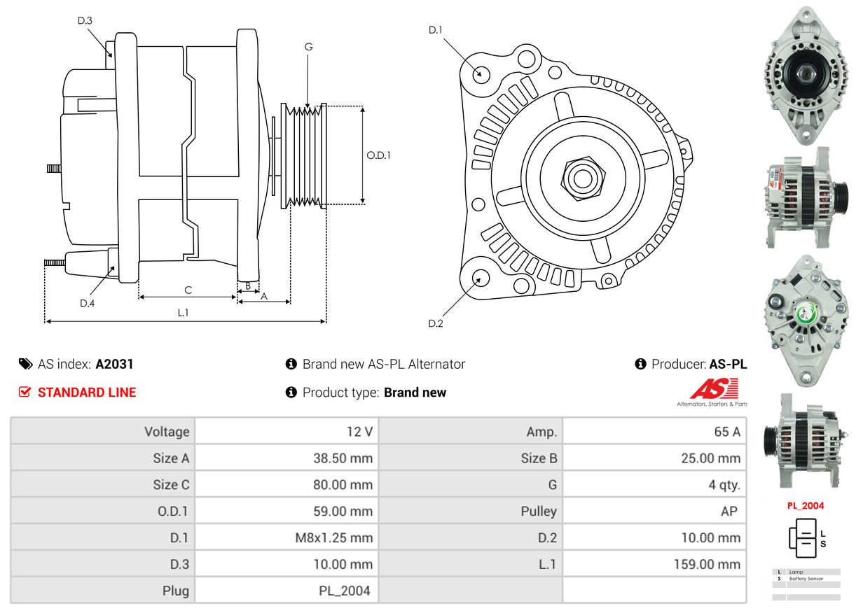 AS-PL je renomovaná evropská značka se sídlem v Polsku, která se specializuje na výrobu a distribuci startérů, alternátorů a jejich komponentů. Společnost vznikla v roce 1992 a dnes dodává více než 20 000 různých produktů do více než 100 zemí světa. AS-PL nabízí jak kompletní jednotky, tak i náhradní díly a komponenty pro opravy.