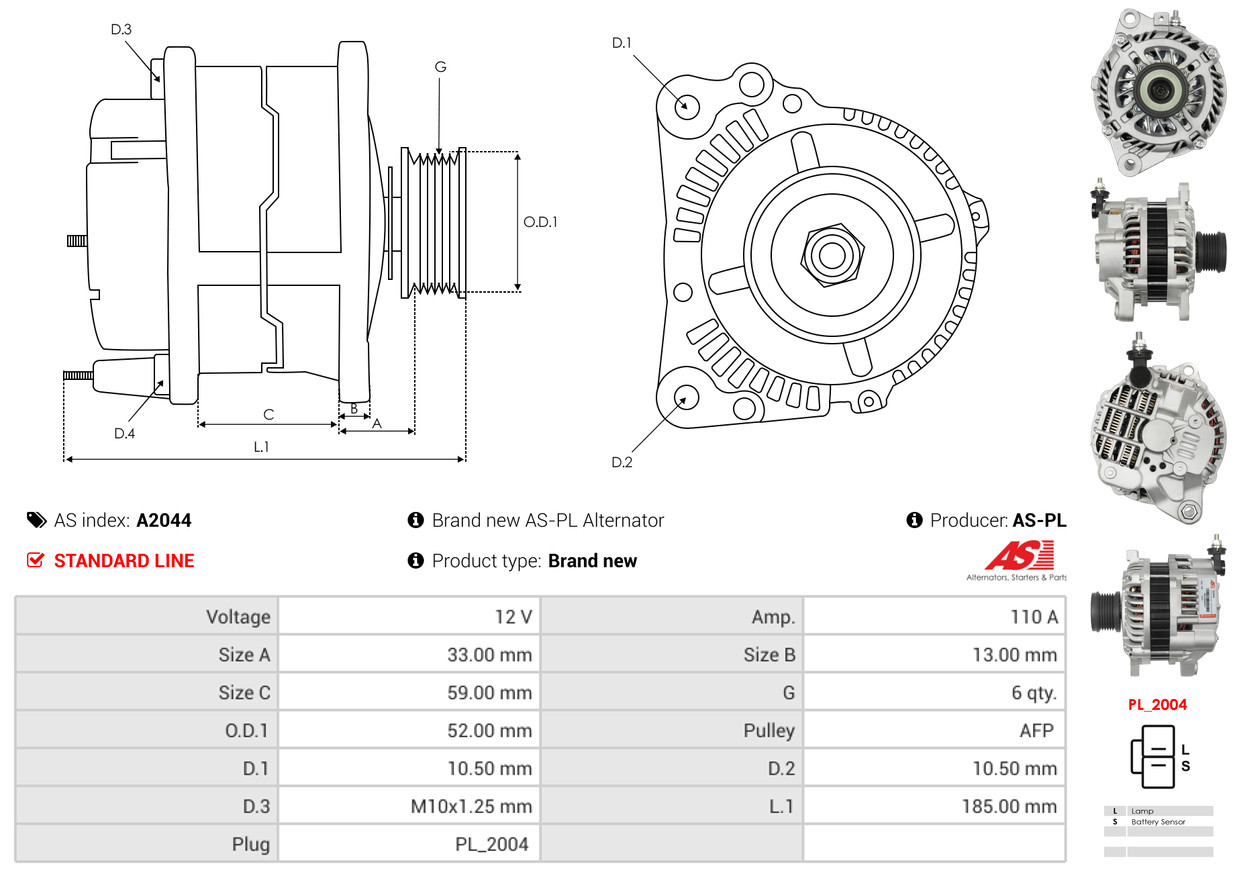 AS-PL je renomovaná evropská značka se sídlem v Polsku, která se specializuje na výrobu a distribuci startérů, alternátorů a jejich komponentů. Společnost vznikla v roce 1992 a dnes dodává více než 20 000 různých produktů do více než 100 zemí světa. AS-PL nabízí jak kompletní jednotky, tak i náhradní díly a komponenty pro opravy.