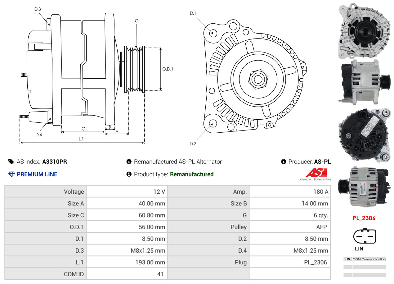 AS-PL je renomovaná evropská značka se sídlem v Polsku, která se specializuje na výrobu a distribuci startérů, alternátorů a jejich komponentů. Společnost vznikla v roce 1992 a dnes dodává více než 20 000 různých produktů do více než 100 zemí světa. AS-PL nabízí jak kompletní jednotky, tak i náhradní díly a komponenty pro opravy. [Více zde]