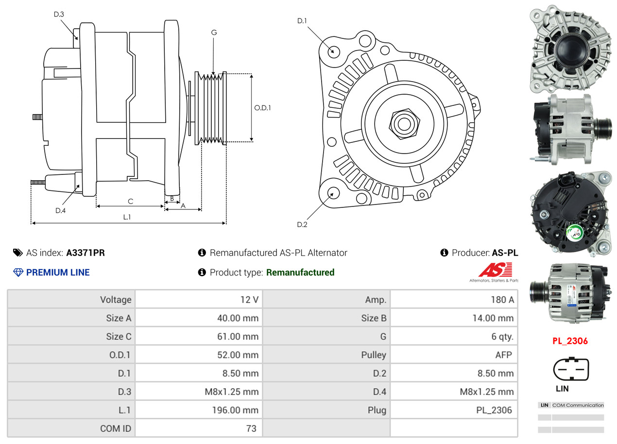 AS-PL je renomovaná evropská značka se sídlem v Polsku, která se specializuje na výrobu a distribuci startérů, alternátorů a jejich komponentů. Společnost vznikla v roce 1992 a dnes dodává více než 20 000 různých produktů do více než 100 zemí světa. AS-PL nabízí jak kompletní jednotky, tak i náhradní díly a komponenty pro opravy. [Více zde]