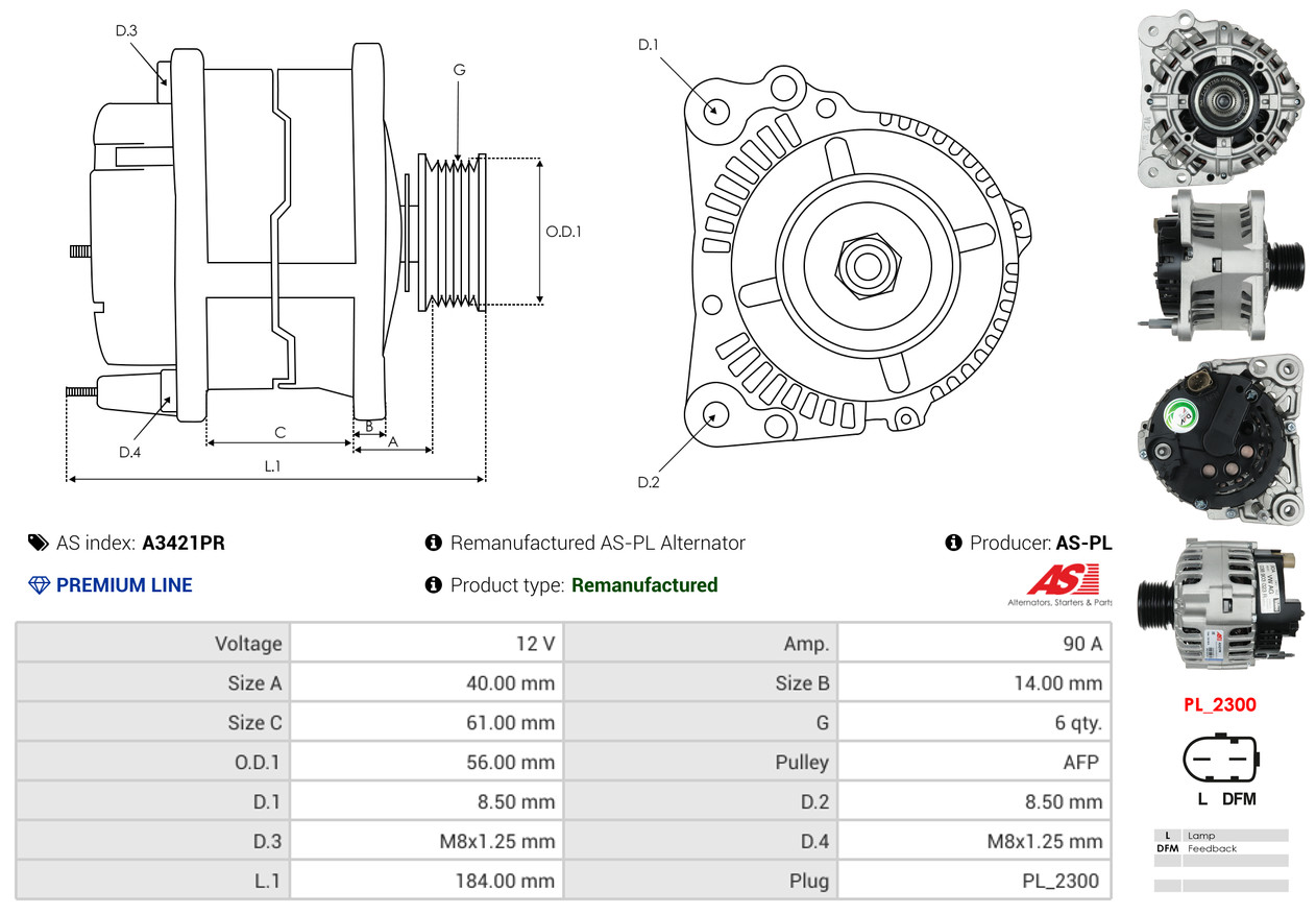 AS-PL je renomovaná evropská značka se sídlem v Polsku, která se specializuje na výrobu a distribuci startérů, alternátorů a jejich komponentů. Společnost vznikla v roce 1992 a dnes dodává více než 20 000 různých produktů do více než 100 zemí světa. AS-PL nabízí jak kompletní jednotky, tak i náhradní díly a komponenty pro opravy. [Více zde]