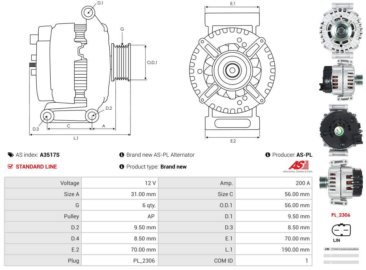 AS-PL je renomovaná evropská značka se sídlem v Polsku, která se specializuje na výrobu a distribuci startérů, alternátorů a jejich komponentů. Společnost vznikla v roce 1992 a dnes dodává více než 20 000 různých produktů do více než 100 zemí světa. AS-PL nabízí jak kompletní jednotky, tak i náhradní díly a komponenty pro opravy. [Více zde]