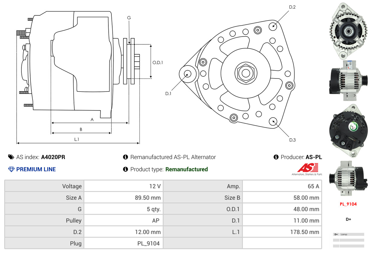 AS-PL je renomovaná evropská značka se sídlem v Polsku, která se specializuje na výrobu a distribuci startérů, alternátorů a jejich komponentů. Společnost vznikla v roce 1992 a dnes dodává více než 20 000 různých produktů do více než 100 zemí světa. AS-PL nabízí jak kompletní jednotky, tak i náhradní díly a komponenty pro opravy. [Více zde]