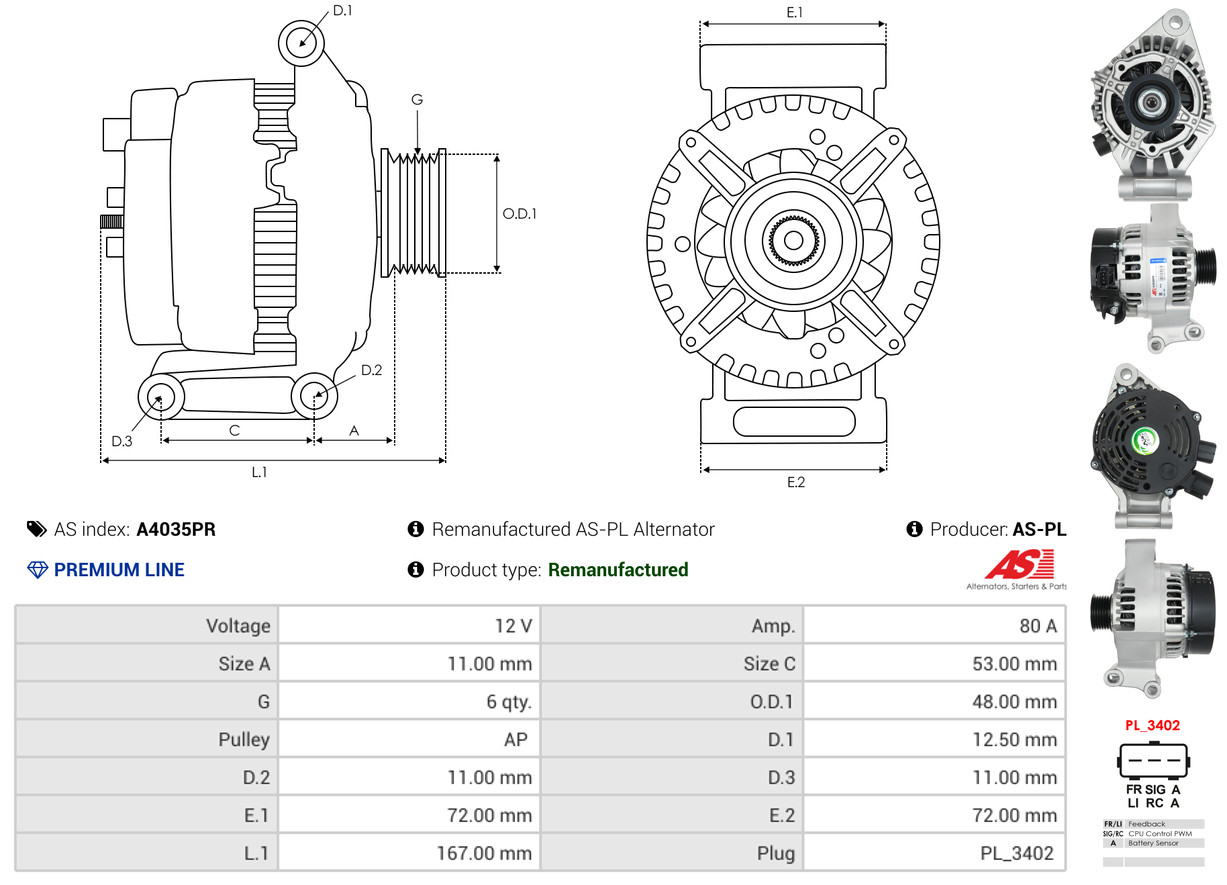 AS-PL je renomovaná evropská značka se sídlem v Polsku, která se specializuje na výrobu a distribuci startérů, alternátorů a jejich komponentů. Společnost vznikla v roce 1992 a dnes dodává více než 20 000 různých produktů do více než 100 zemí světa. AS-PL nabízí jak kompletní jednotky, tak i náhradní díly a komponenty pro opravy. [Více zde]