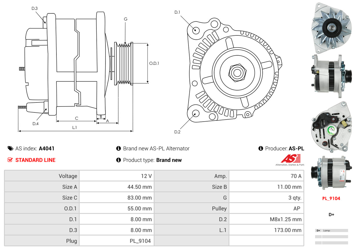 AS-PL je renomovaná evropská značka se sídlem v Polsku, která se specializuje na výrobu a distribuci startérů, alternátorů a jejich komponentů. Společnost vznikla v roce 1992 a dnes dodává více než 20 000 různých produktů do více než 100 zemí světa. AS-PL nabízí jak kompletní jednotky, tak i náhradní díly a komponenty pro opravy. [Více zde]