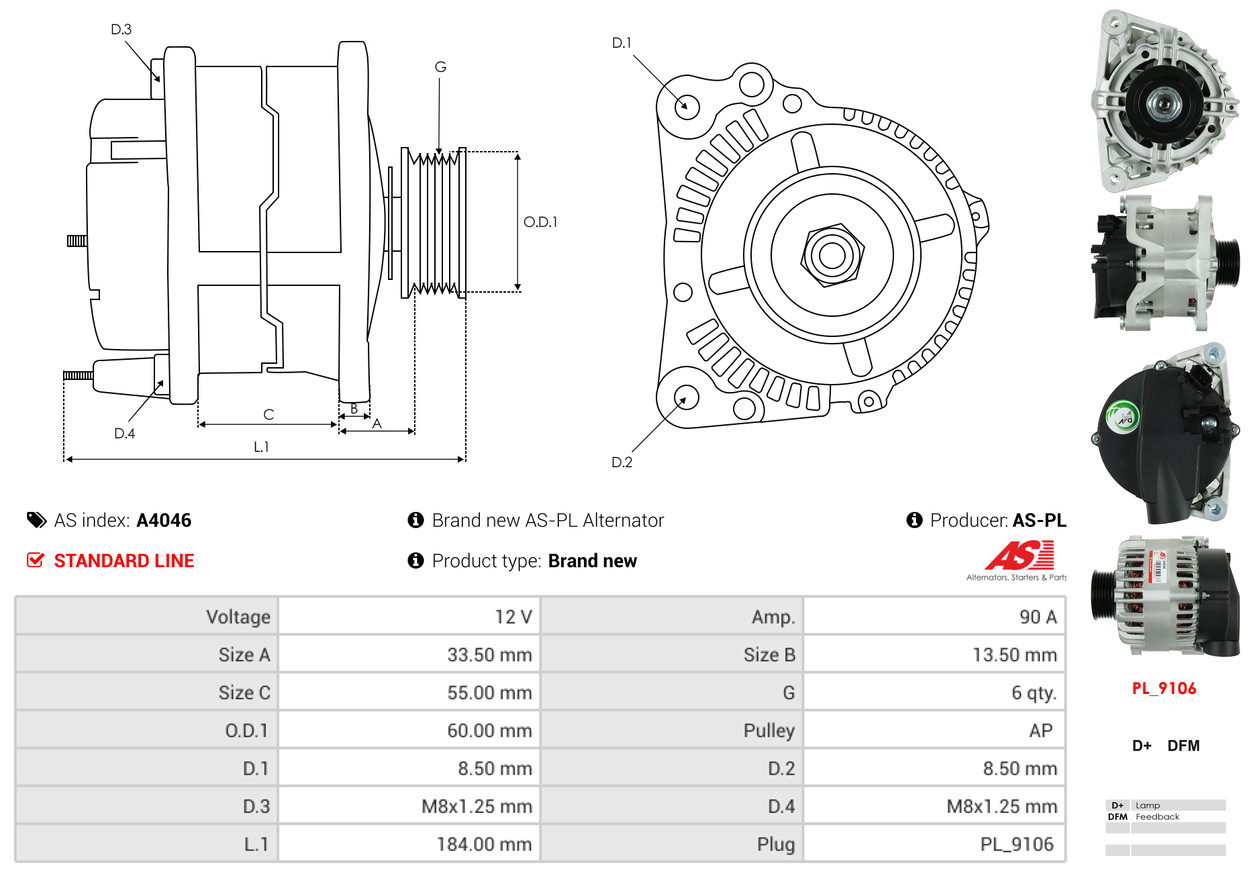 AS-PL je renomovaná evropská značka se sídlem v Polsku, která se specializuje na výrobu a distribuci startérů, alternátorů a jejich komponentů. Společnost vznikla v roce 1992 a dnes dodává více než 20 000 různých produktů do více než 100 zemí světa. AS-PL nabízí jak kompletní jednotky, tak i náhradní díly a komponenty pro opravy.