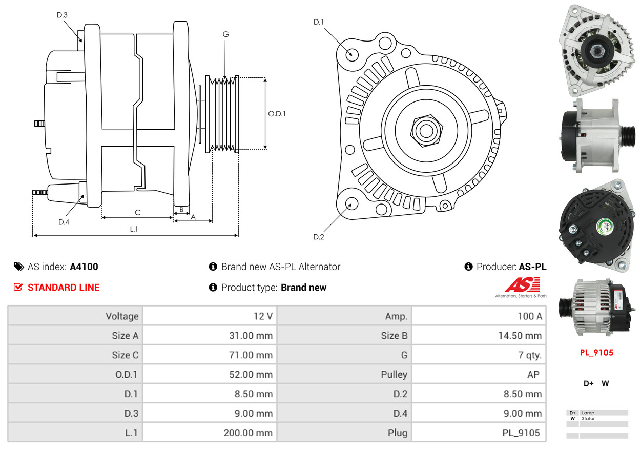 AS-PL je renomovaná evropská značka se sídlem v Polsku, která se specializuje na výrobu a distribuci startérů, alternátorů a jejich komponentů. Společnost vznikla v roce 1992 a dnes dodává více než 20 000 různých produktů do více než 100 zemí světa. AS-PL nabízí jak kompletní jednotky, tak i náhradní díly a komponenty pro opravy. [Více zde]