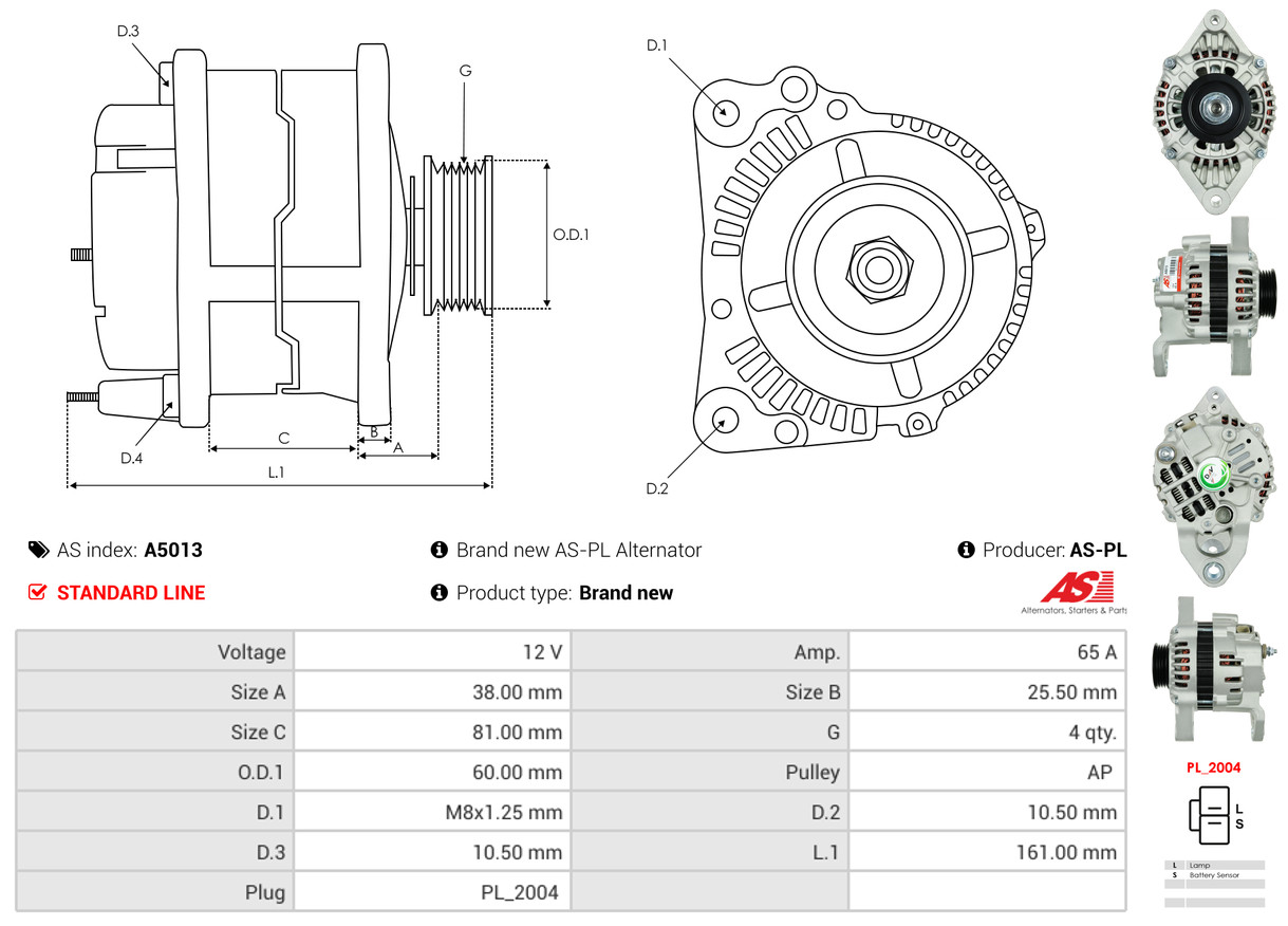 AS-PL je renomovaná evropská značka se sídlem v Polsku, která se specializuje na výrobu a distribuci startérů, alternátorů a jejich komponentů. Společnost vznikla v roce 1992 a dnes dodává více než 20 000 různých produktů do více než 100 zemí světa. AS-PL nabízí jak kompletní jednotky, tak i náhradní díly a komponenty pro opravy.