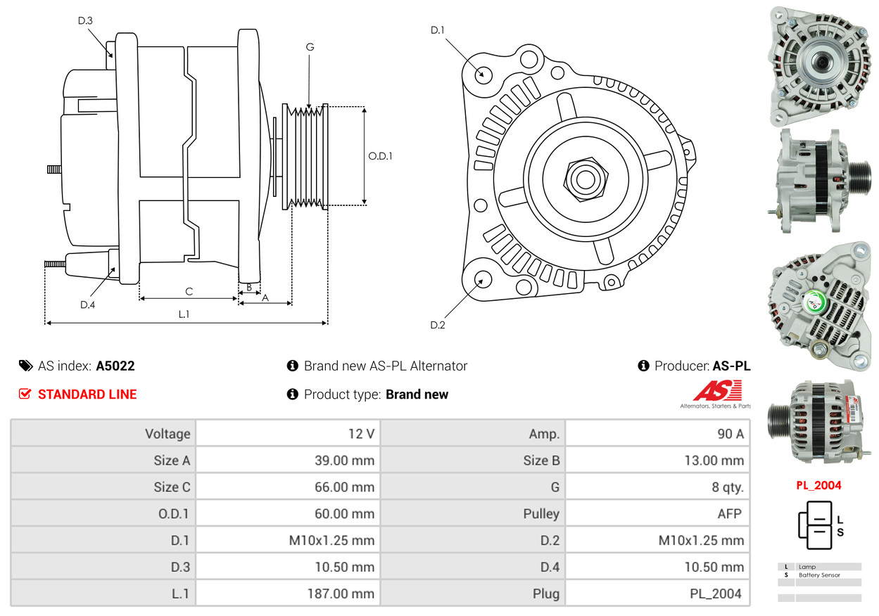 AS-PL je renomovaná evropská značka se sídlem v Polsku, která se specializuje na výrobu a distribuci startérů, alternátorů a jejich komponentů. Společnost vznikla v roce 1992 a dnes dodává více než 20 000 různých produktů do více než 100 zemí světa. AS-PL nabízí jak kompletní jednotky, tak i náhradní díly a komponenty pro opravy. [Více zde]