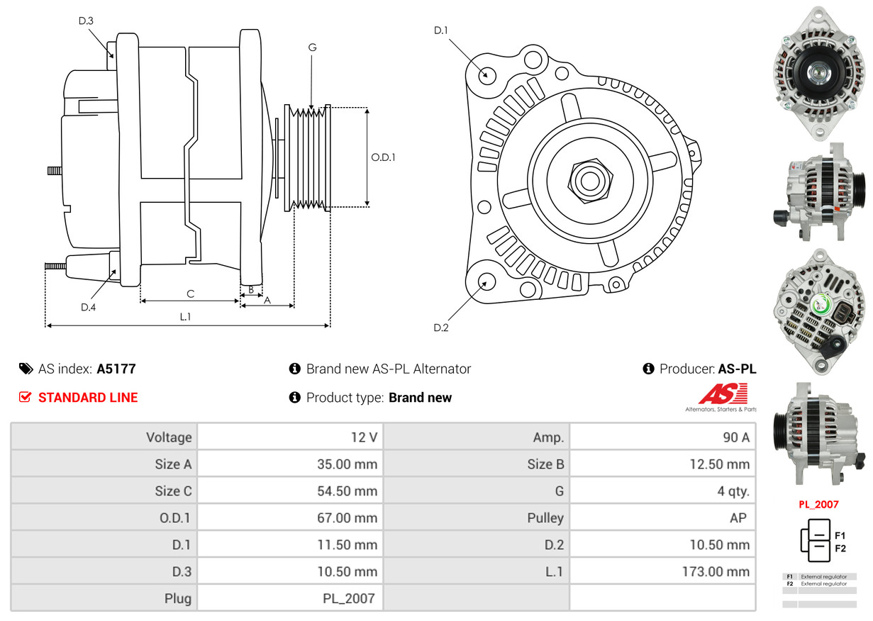 AS-PL je renomovaná evropská značka se sídlem v Polsku, která se specializuje na výrobu a distribuci startérů, alternátorů a jejich komponentů. Společnost vznikla v roce 1992 a dnes dodává více než 20 000 různých produktů do více než 100 zemí světa. AS-PL nabízí jak kompletní jednotky, tak i náhradní díly a komponenty pro opravy. [Více zde]