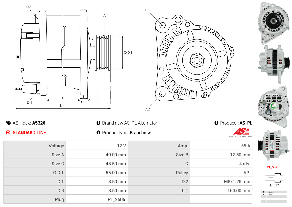 AS-PL je renomovaná evropská značka se sídlem v Polsku, která se specializuje na výrobu a distribuci startérů, alternátorů a jejich komponentů. Společnost vznikla v roce 1992 a dnes dodává více než 20 000 různých produktů do více než 100 zemí světa. AS-PL nabízí jak kompletní jednotky, tak i náhradní díly a komponenty pro opravy.