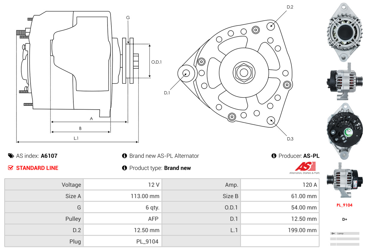 AS-PL je renomovaná evropská značka se sídlem v Polsku, která se specializuje na výrobu a distribuci startérů, alternátorů a jejich komponentů. Společnost vznikla v roce 1992 a dnes dodává více než 20 000 různých produktů do více než 100 zemí světa. AS-PL nabízí jak kompletní jednotky, tak i náhradní díly a komponenty pro opravy. [Více zde]