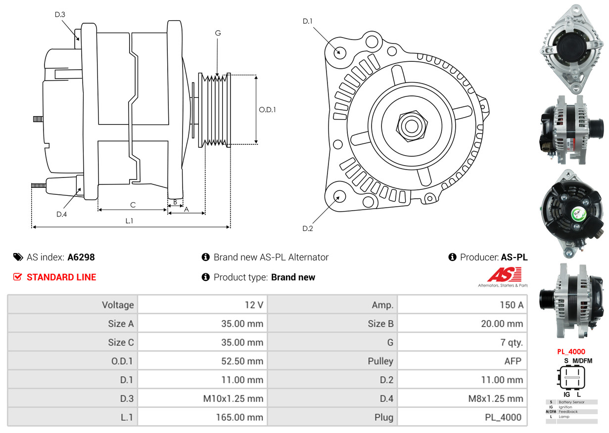 AS-PL je renomovaná evropská značka se sídlem v Polsku, která se specializuje na výrobu a distribuci startérů, alternátorů a jejich komponentů. Společnost vznikla v roce 1992 a dnes dodává více než 20 000 různých produktů do více než 100 zemí světa. AS-PL nabízí jak kompletní jednotky, tak i náhradní díly a komponenty pro opravy. [Více zde]