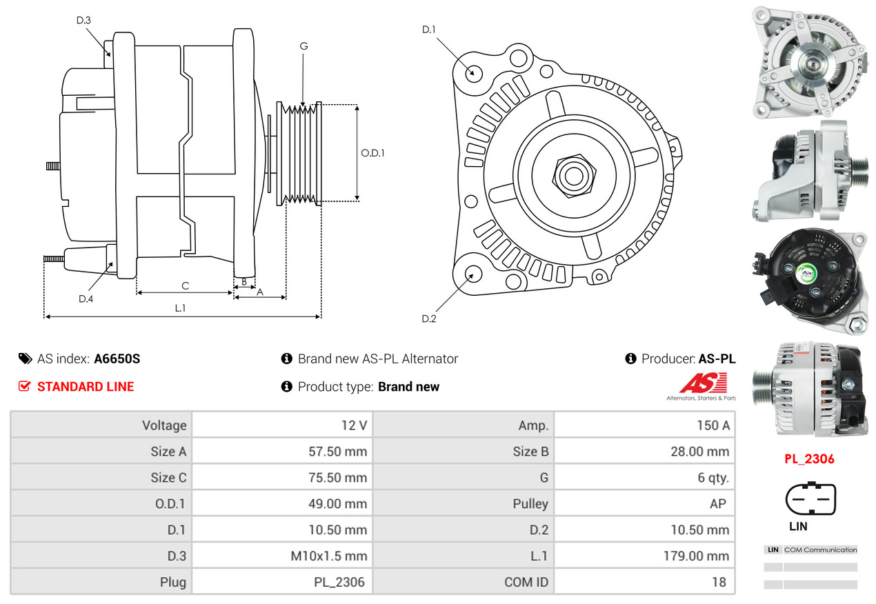 AS-PL je renomovaná evropská značka se sídlem v Polsku, která se specializuje na výrobu a distribuci startérů, alternátorů a jejich komponentů. Společnost vznikla v roce 1992 a dnes dodává více než 20 000 různých produktů do více než 100 zemí světa. AS-PL nabízí jak kompletní jednotky, tak i náhradní díly a komponenty pro opravy. [Více zde]
