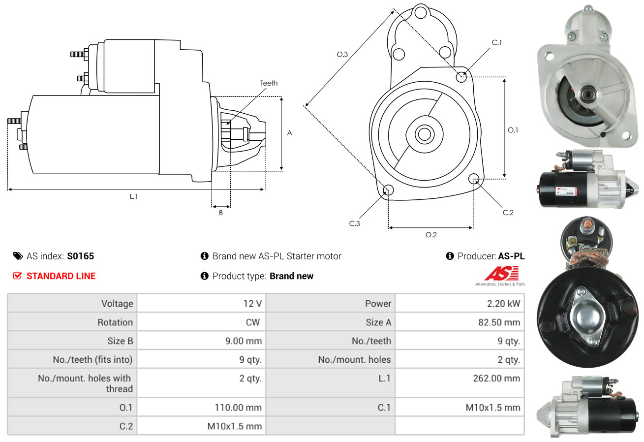 AS-PL je renomovaná evropská značka se sídlem v Polsku, která se specializuje na výrobu a distribuci startérů, alternátorů a jejich komponentů. Společnost vznikla v roce 1992 a dnes dodává více než 20 000 různých produktů do více než 100 zemí světa. AS-PL nabízí jak kompletní jednotky, tak i náhradní díly a komponenty pro opravy.