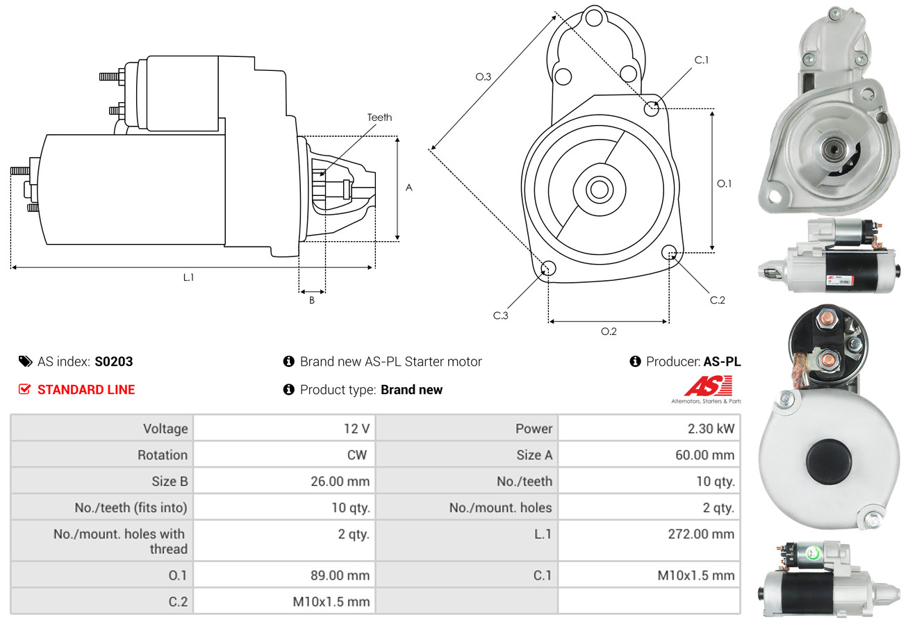 AS-PL je renomovaná evropská značka se sídlem v Polsku, která se specializuje na výrobu a distribuci startérů, alternátorů a jejich komponentů. Společnost vznikla v roce 1992 a dnes dodává více než 20 000 různých produktů do více než 100 zemí světa. AS-PL nabízí jak kompletní jednotky, tak i náhradní díly a komponenty pro opravy.