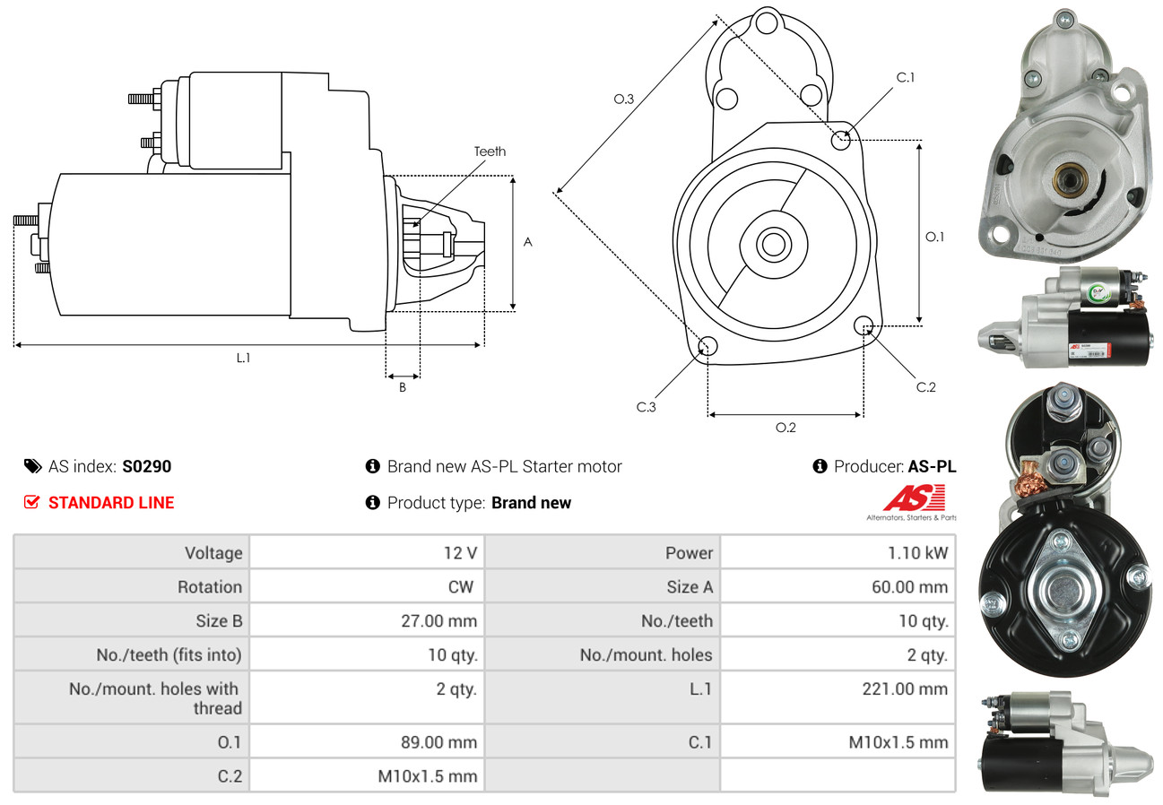 AS-PL je renomovaná evropská značka se sídlem v Polsku, která se specializuje na výrobu a distribuci startérů, alternátorů a jejich komponentů. Společnost vznikla v roce 1992 a dnes dodává více než 20 000 různých produktů do více než 100 zemí světa. AS-PL nabízí jak kompletní jednotky, tak i náhradní díly a komponenty pro opravy.
