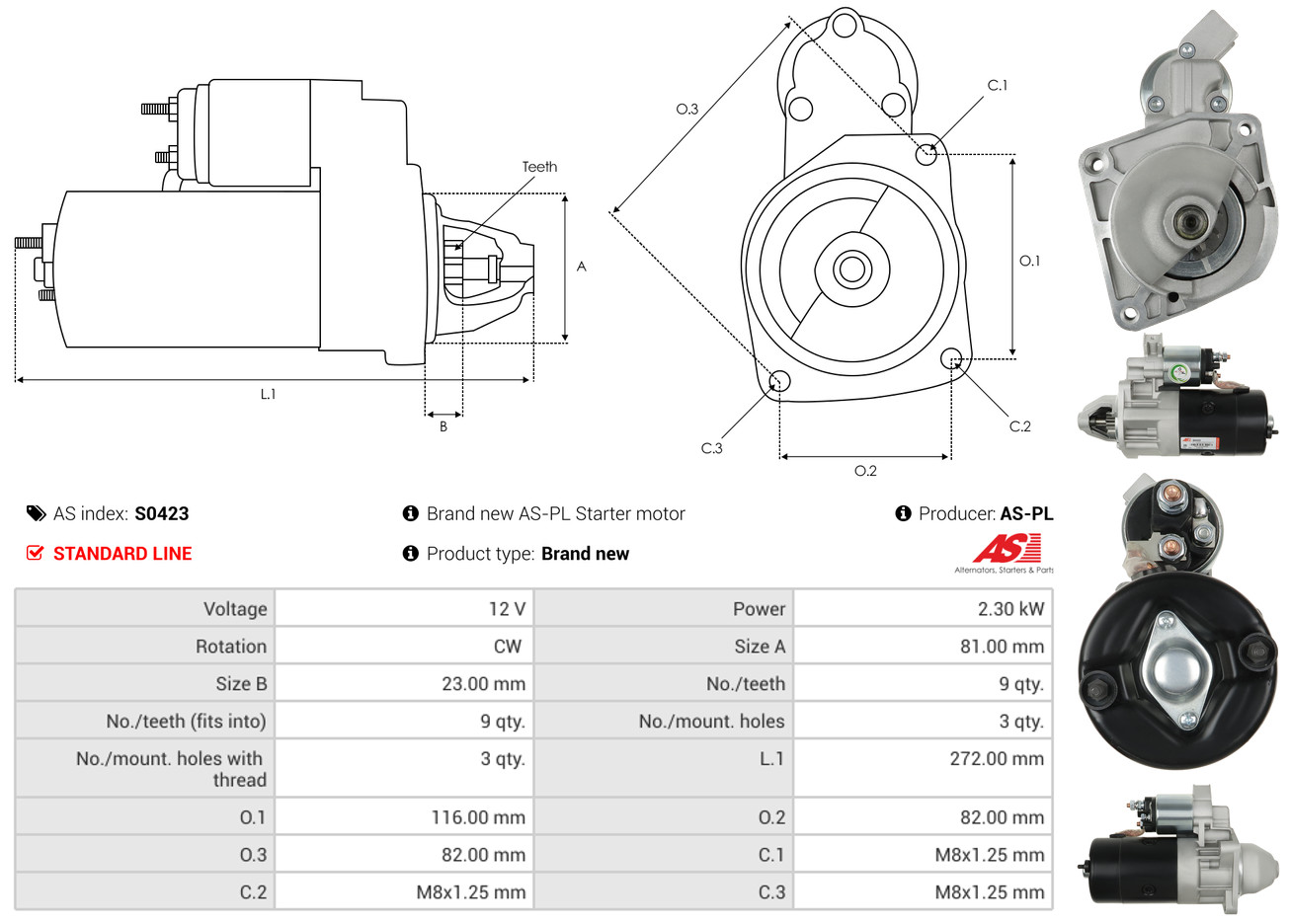 AS-PL je renomovaná evropská značka se sídlem v Polsku, která se specializuje na výrobu a distribuci startérů, alternátorů a jejich komponentů. Společnost vznikla v roce 1992 a dnes dodává více než 20 000 různých produktů do více než 100 zemí světa. AS-PL nabízí jak kompletní jednotky, tak i náhradní díly a komponenty pro opravy.