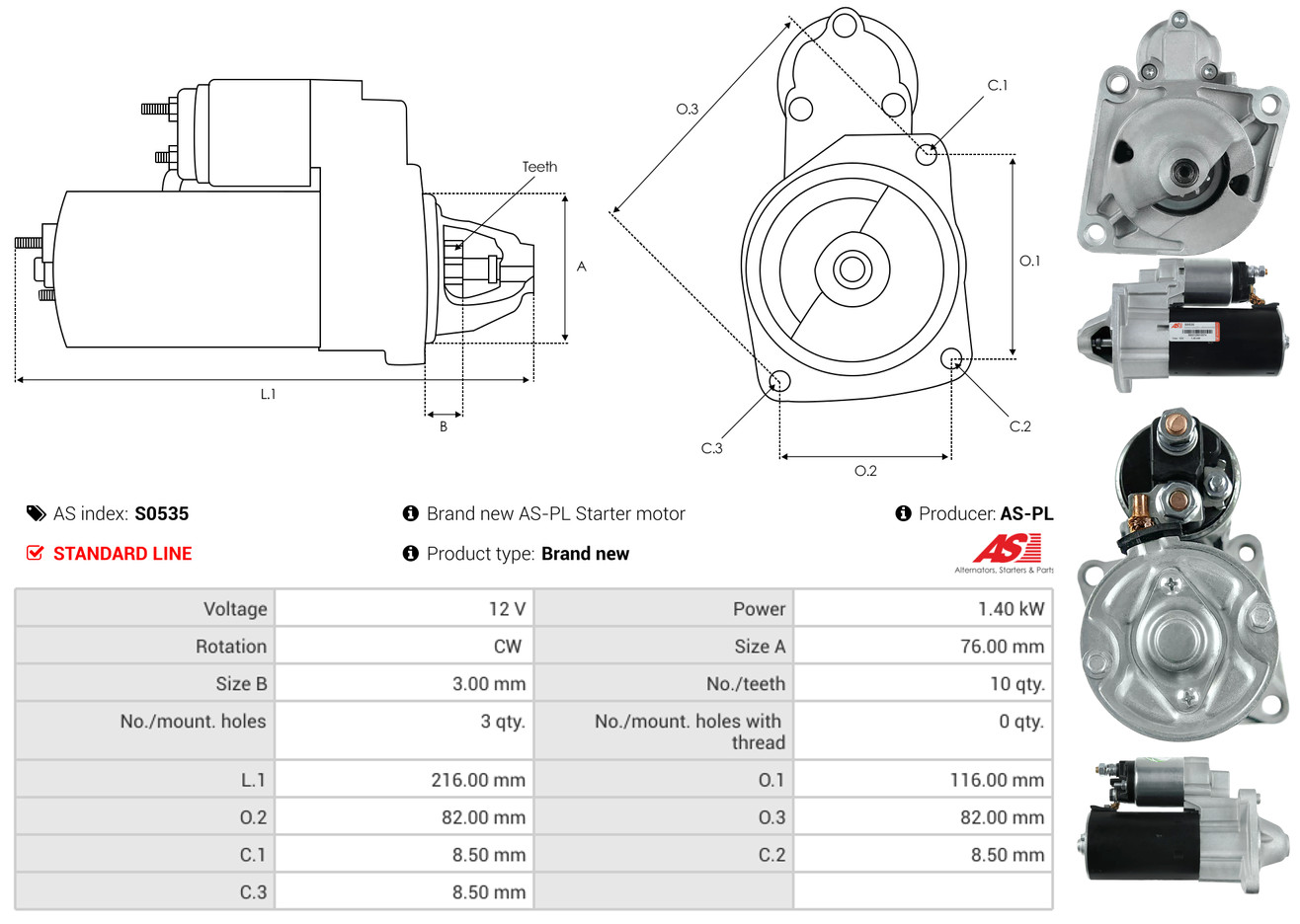 AS-PL je renomovaná evropská značka se sídlem v Polsku, která se specializuje na výrobu a distribuci startérů, alternátorů a jejich komponentů. Společnost vznikla v roce 1992 a dnes dodává více než 20 000 různých produktů do více než 100 zemí světa. AS-PL nabízí jak kompletní jednotky, tak i náhradní díly a komponenty pro opravy.