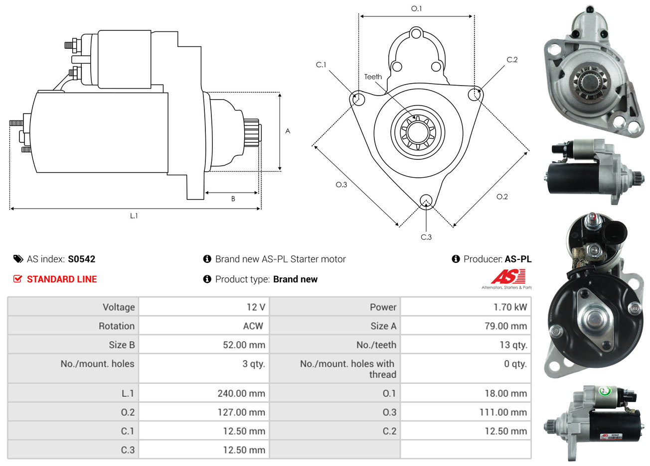 AS-PL je renomovaná evropská značka se sídlem v Polsku, která se specializuje na výrobu a distribuci startérů, alternátorů a jejich komponentů. Společnost vznikla v roce 1992 a dnes dodává více než 20 000 různých produktů do více než 100 zemí světa. AS-PL nabízí jak kompletní jednotky, tak i náhradní díly a komponenty pro opravy.