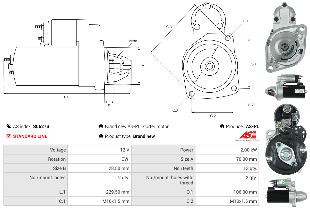 AS-PL je renomovaná evropská značka se sídlem v Polsku, která se specializuje na výrobu a distribuci startérů, alternátorů a jejich komponentů. Společnost vznikla v roce 1992 a dnes dodává více než 20 000 různých produktů do více než 100 zemí světa. AS-PL nabízí jak kompletní jednotky, tak i náhradní díly a komponenty pro opravy. [Více zde]