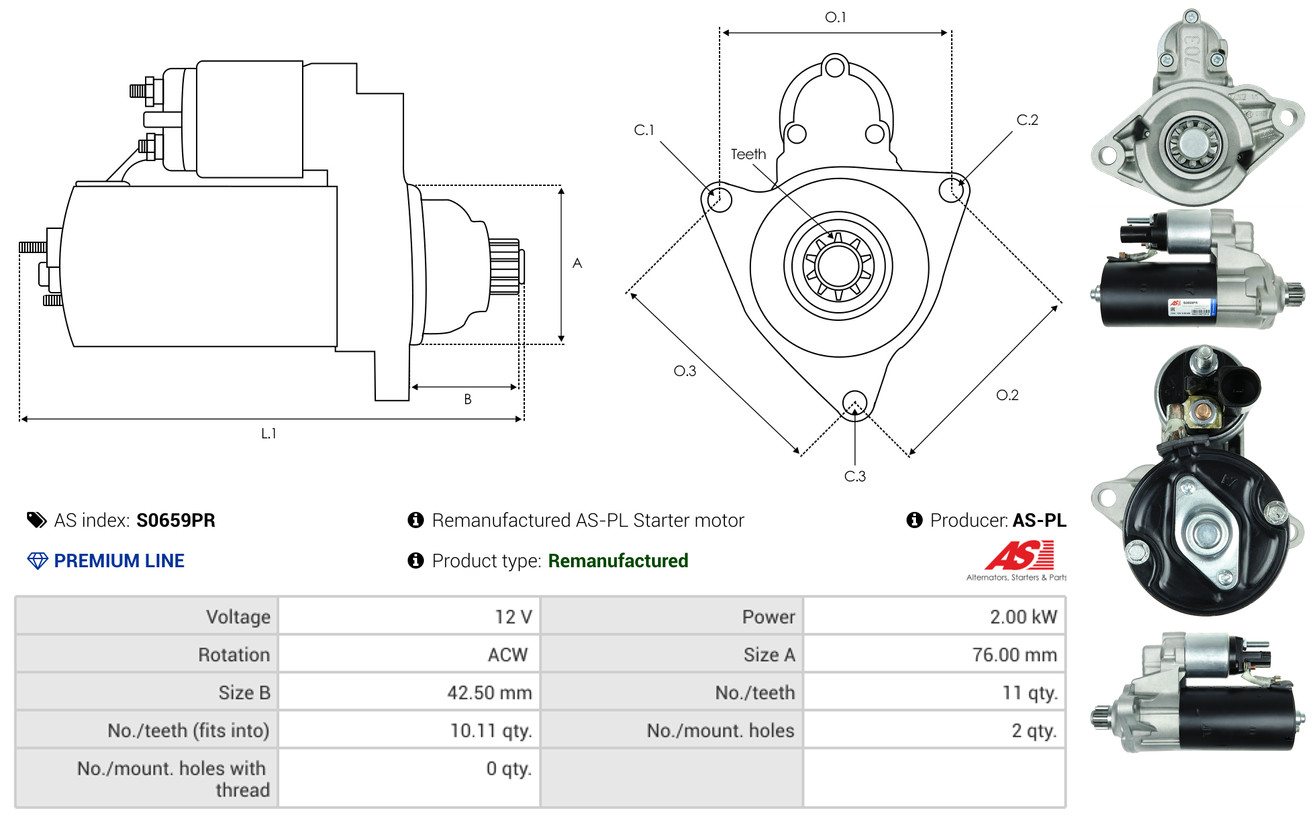AS-PL je renomovaná evropská značka se sídlem v Polsku, která se specializuje na výrobu a distribuci startérů, alternátorů a jejich komponentů. Společnost vznikla v roce 1992 a dnes dodává více než 20 000 různých produktů do více než 100 zemí světa. AS-PL nabízí jak kompletní jednotky, tak i náhradní díly a komponenty pro opravy. [Více zde]