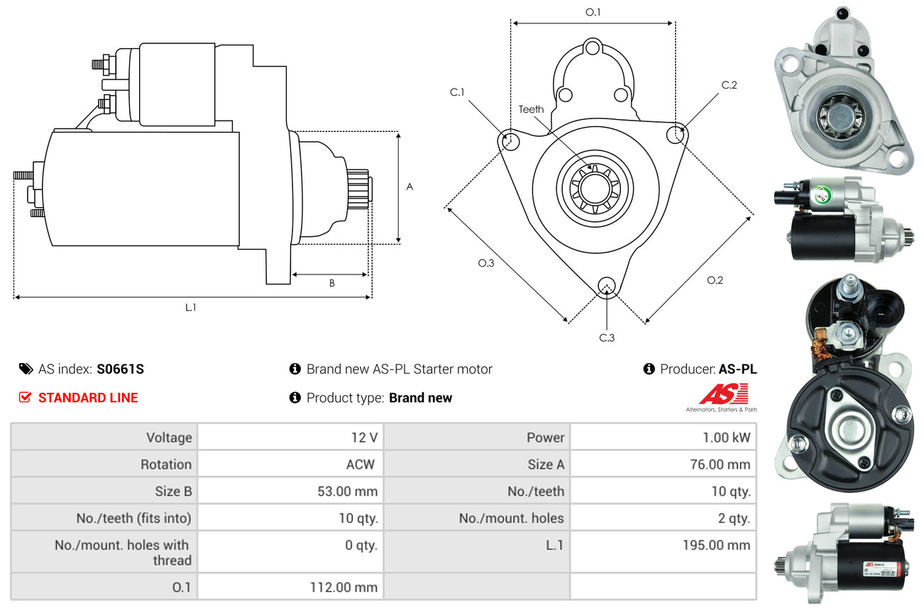 AS-PL je renomovaná evropská značka se sídlem v Polsku, která se specializuje na výrobu a distribuci startérů, alternátorů a jejich komponentů. Společnost vznikla v roce 1992 a dnes dodává více než 20 000 různých produktů do více než 100 zemí světa. AS-PL nabízí jak kompletní jednotky, tak i náhradní díly a komponenty pro opravy.