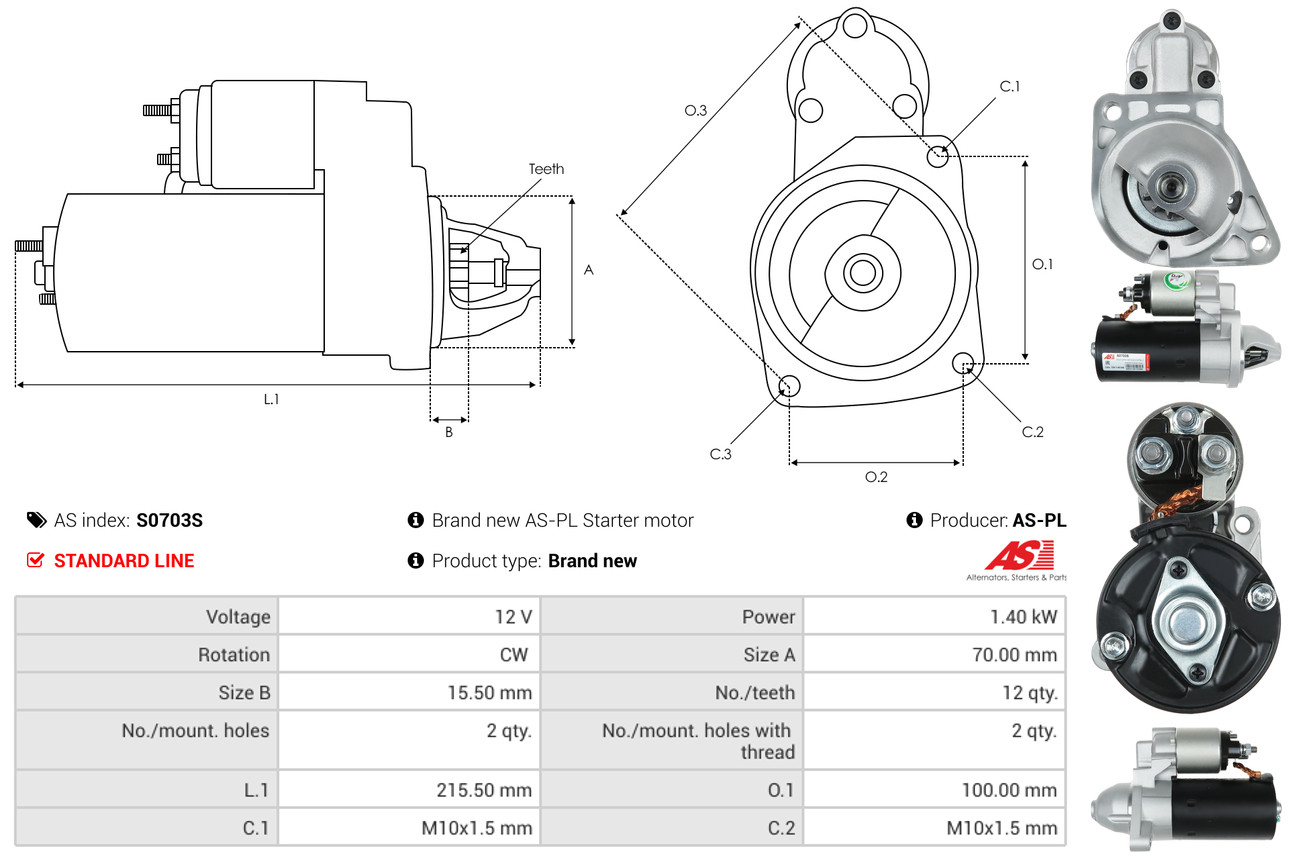 AS-PL je renomovaná evropská značka se sídlem v Polsku, která se specializuje na výrobu a distribuci startérů, alternátorů a jejich komponentů. Společnost vznikla v roce 1992 a dnes dodává více než 20 000 různých produktů do více než 100 zemí světa. AS-PL nabízí jak kompletní jednotky, tak i náhradní díly a komponenty pro opravy.