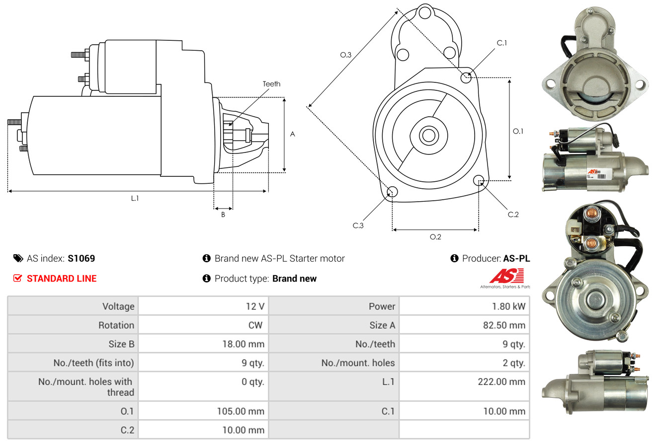 AS-PL je renomovaná evropská značka se sídlem v Polsku, která se specializuje na výrobu a distribuci startérů, alternátorů a jejich komponentů. Společnost vznikla v roce 1992 a dnes dodává více než 20 000 různých produktů do více než 100 zemí světa. AS-PL nabízí jak kompletní jednotky, tak i náhradní díly a komponenty pro opravy.