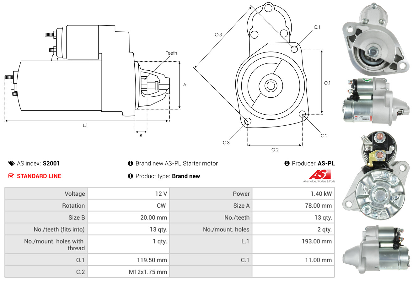AS-PL je renomovaná evropská značka se sídlem v Polsku, která se specializuje na výrobu a distribuci startérů, alternátorů a jejich komponentů. Společnost vznikla v roce 1992 a dnes dodává více než 20 000 různých produktů do více než 100 zemí světa. AS-PL nabízí jak kompletní jednotky, tak i náhradní díly a komponenty pro opravy. [Více zde]