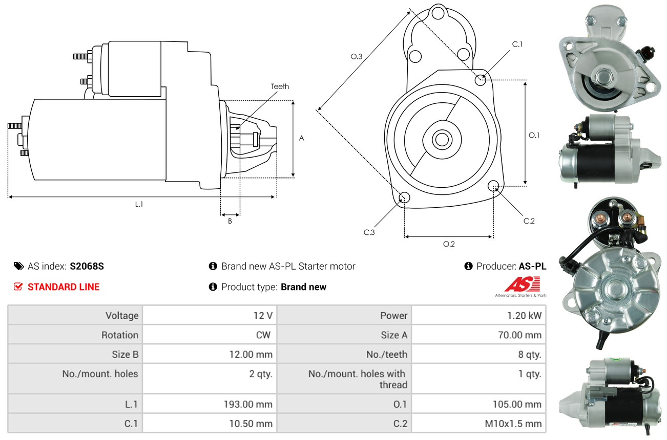 AS-PL je renomovaná evropská značka se sídlem v Polsku, která se specializuje na výrobu a distribuci startérů, alternátorů a jejich komponentů. Společnost vznikla v roce 1992 a dnes dodává více než 20 000 různých produktů do více než 100 zemí světa. AS-PL nabízí jak kompletní jednotky, tak i náhradní díly a komponenty pro opravy. [Více zde]