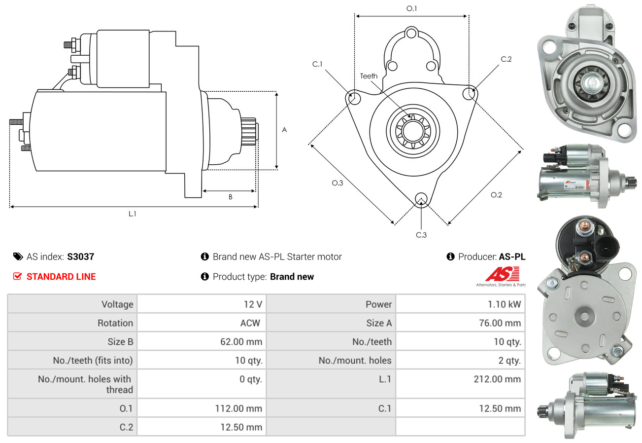 AS-PL je renomovaná evropská značka se sídlem v Polsku, která se specializuje na výrobu a distribuci startérů, alternátorů a jejich komponentů. Společnost vznikla v roce 1992 a dnes dodává více než 20 000 různých produktů do více než 100 zemí světa. AS-PL nabízí jak kompletní jednotky, tak i náhradní díly a komponenty pro opravy.