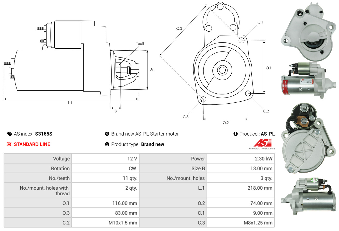 AS-PL je renomovaná evropská značka se sídlem v Polsku, která se specializuje na výrobu a distribuci startérů, alternátorů a jejich komponentů. Společnost vznikla v roce 1992 a dnes dodává více než 20 000 různých produktů do více než 100 zemí světa. AS-PL nabízí jak kompletní jednotky, tak i náhradní díly a komponenty pro opravy.