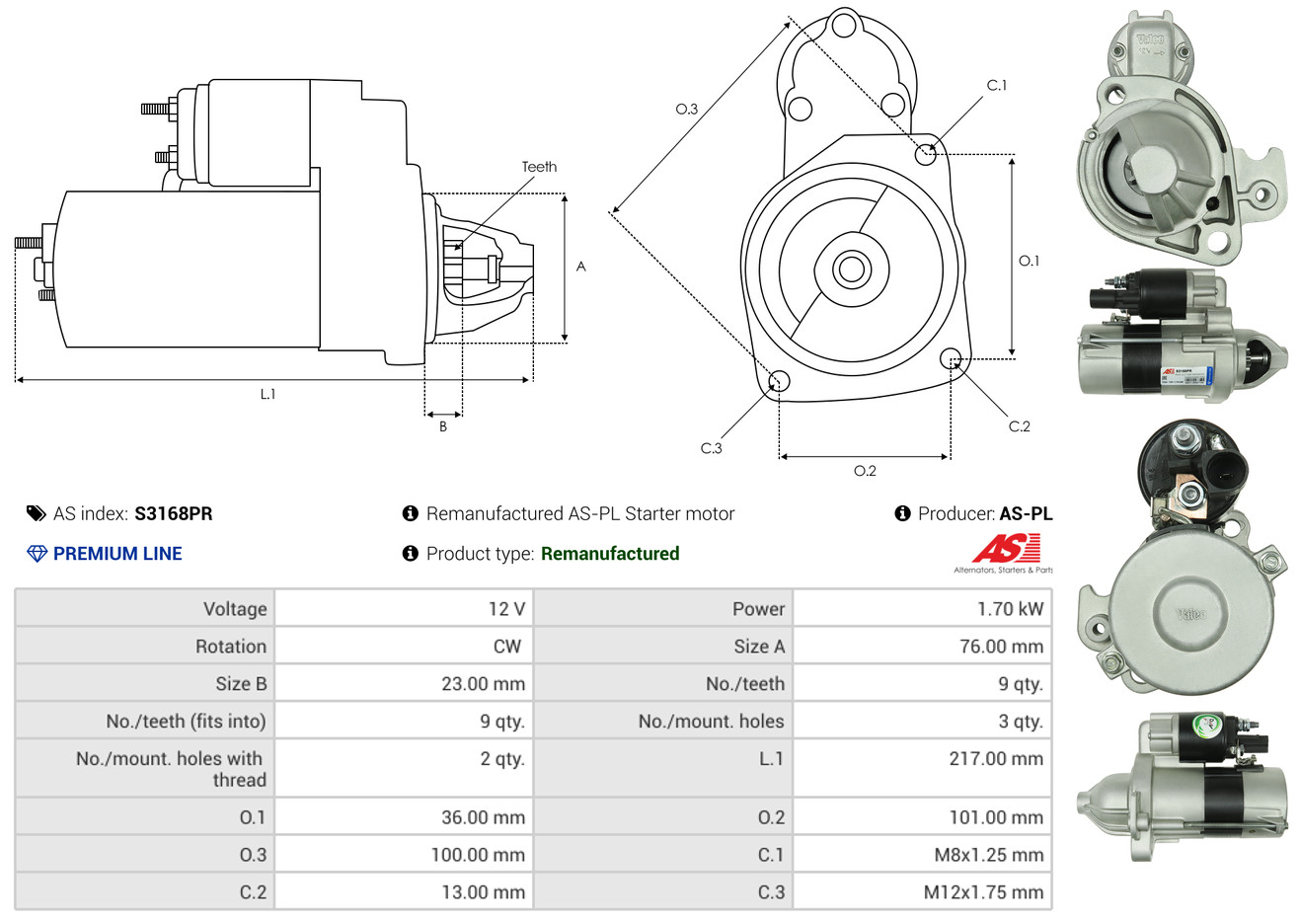 AS-PL je renomovaná evropská značka se sídlem v Polsku, která se specializuje na výrobu a distribuci startérů, alternátorů a jejich komponentů. Společnost vznikla v roce 1992 a dnes dodává více než 20 000 různých produktů do více než 100 zemí světa. AS-PL nabízí jak kompletní jednotky, tak i náhradní díly a komponenty pro opravy. [Více zde]
