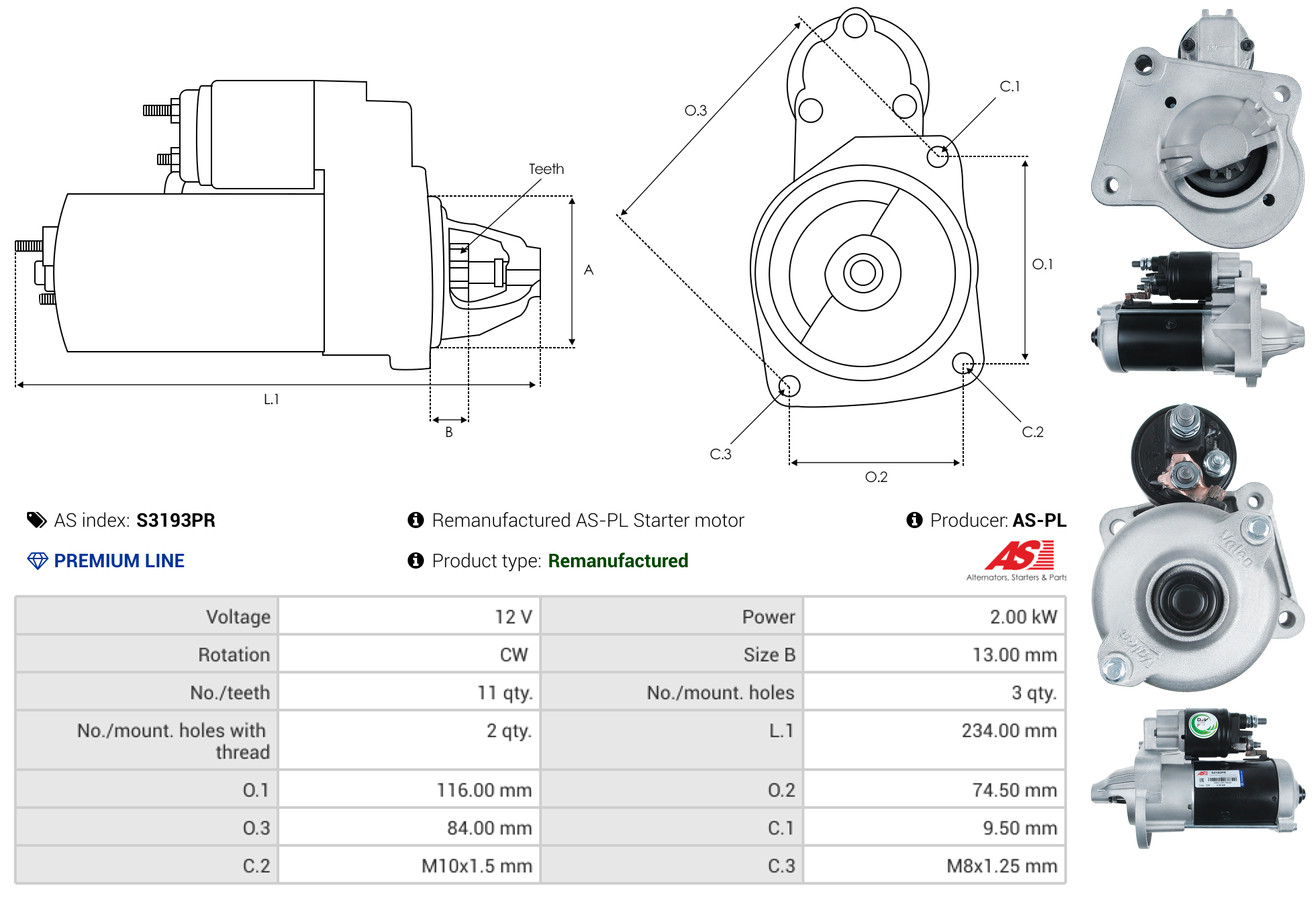 AS-PL je renomovaná evropská značka se sídlem v Polsku, která se specializuje na výrobu a distribuci startérů, alternátorů a jejich komponentů. Společnost vznikla v roce 1992 a dnes dodává více než 20 000 různých produktů do více než 100 zemí světa. AS-PL nabízí jak kompletní jednotky, tak i náhradní díly a komponenty pro opravy. [Více zde]