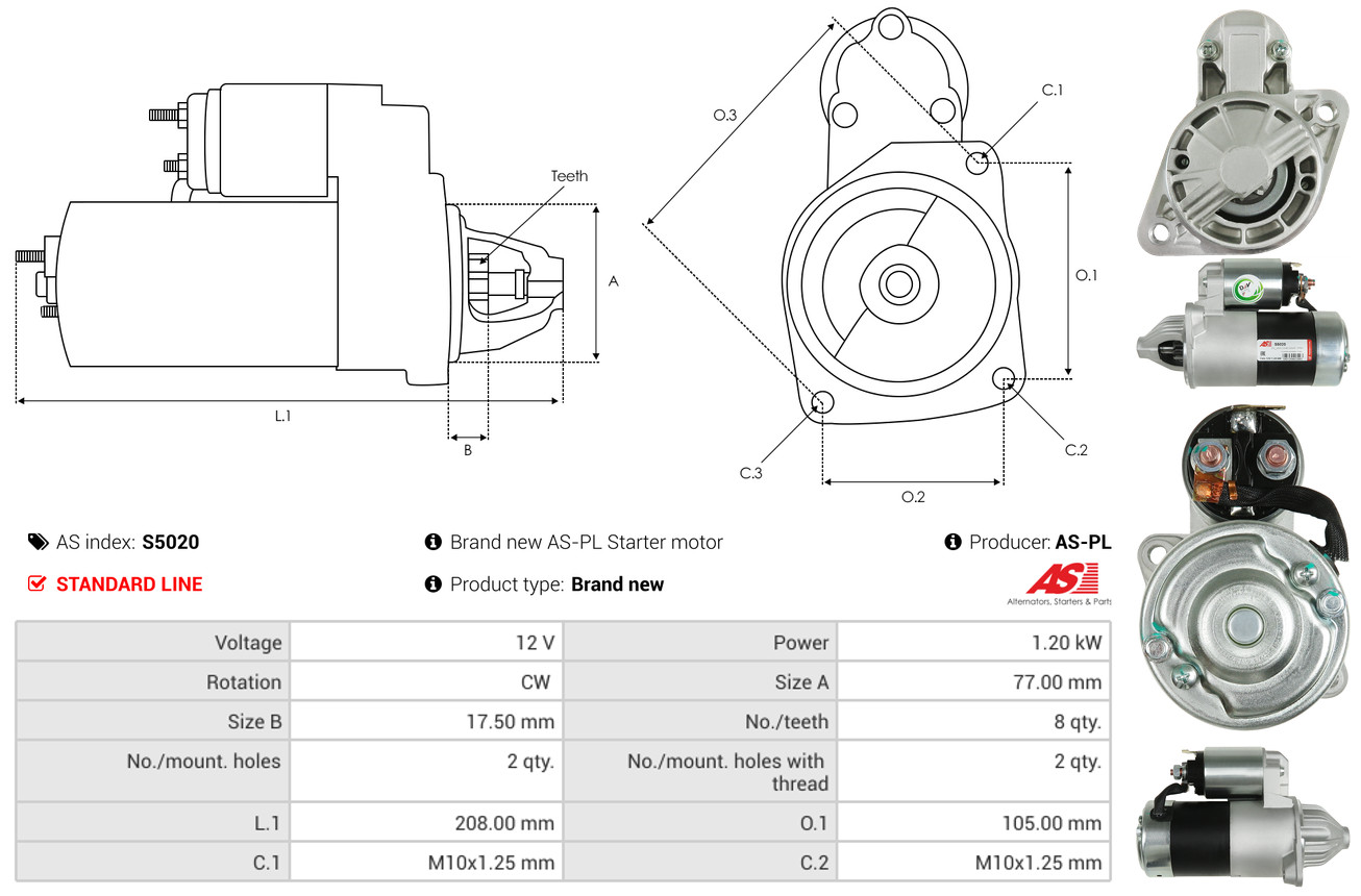 AS-PL je renomovaná evropská značka se sídlem v Polsku, která se specializuje na výrobu a distribuci startérů, alternátorů a jejich komponentů. Společnost vznikla v roce 1992 a dnes dodává více než 20 000 různých produktů do více než 100 zemí světa. AS-PL nabízí jak kompletní jednotky, tak i náhradní díly a komponenty pro opravy. [Více zde]