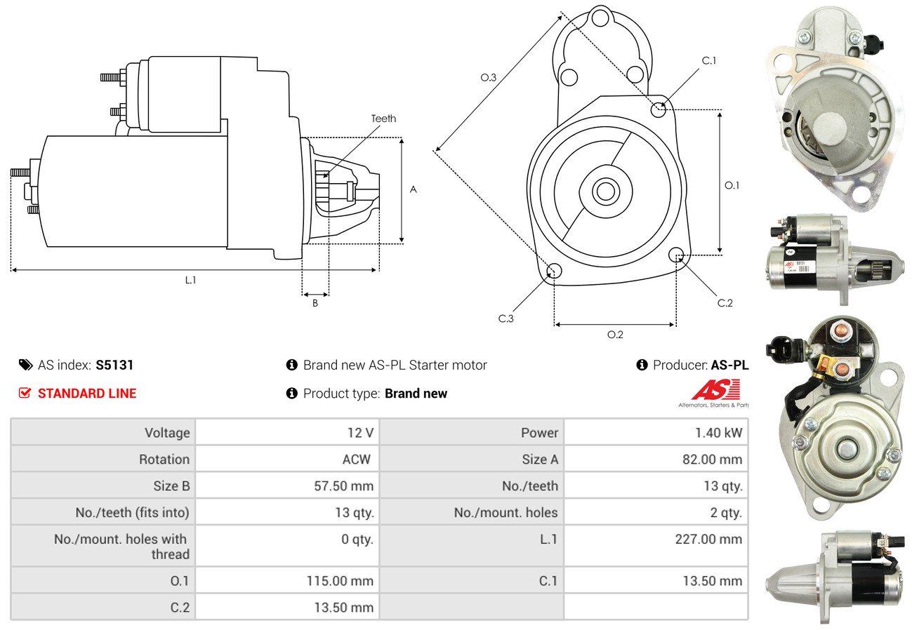 AS-PL je renomovaná evropská značka se sídlem v Polsku, která se specializuje na výrobu a distribuci startérů, alternátorů a jejich komponentů. Společnost vznikla v roce 1992 a dnes dodává více než 20 000 různých produktů do více než 100 zemí světa. AS-PL nabízí jak kompletní jednotky, tak i náhradní díly a komponenty pro opravy. [Více zde]