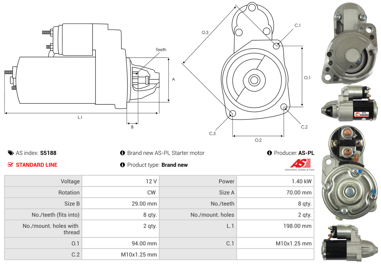 AS-PL je renomovaná evropská značka se sídlem v Polsku, která se specializuje na výrobu a distribuci startérů, alternátorů a jejich komponentů. Společnost vznikla v roce 1992 a dnes dodává více než 20 000 různých produktů do více než 100 zemí světa. AS-PL nabízí jak kompletní jednotky, tak i náhradní díly a komponenty pro opravy.