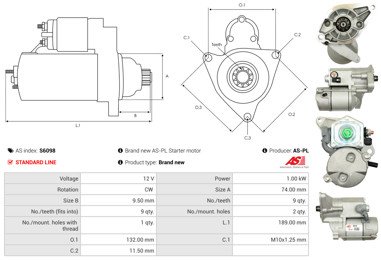 AS-PL je renomovaná evropská značka se sídlem v Polsku, která se specializuje na výrobu a distribuci startérů, alternátorů a jejich komponentů. Společnost vznikla v roce 1992 a dnes dodává více než 20 000 různých produktů do více než 100 zemí světa. AS-PL nabízí jak kompletní jednotky, tak i náhradní díly a komponenty pro opravy.